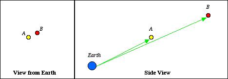 Project: You can use visual binaries to test the quality of your telescope and skies. Select a series of double stars in the Observer's Handbook (or other source) and select ones with a wide variety of separations -- the separation is the angle on the sky (in arc seconds) between the stars. Observe the stars in order of decreasing separation, and try to find the one with the smallest separation which you can still see as two distinct stars ("resolve"). Double stars with smaller separations are "unresolved" with your telescope under the present observing conditions). This is a useful thing to know, since you won't be able to see details finer than about this angular size.