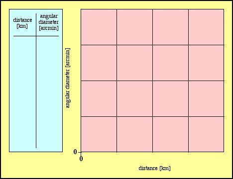 Goals: To help you understand the relationship between the angular size (in degrees, arcmin, or arcsec), physical size (in km or miles) and distance of an object (in km or miles), and to help you discover the mathematical relationship between them. Astronomers use the resulting formula to determine the physical sizes of planets and moons -- it is a key source of observational information in astronomy.