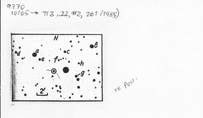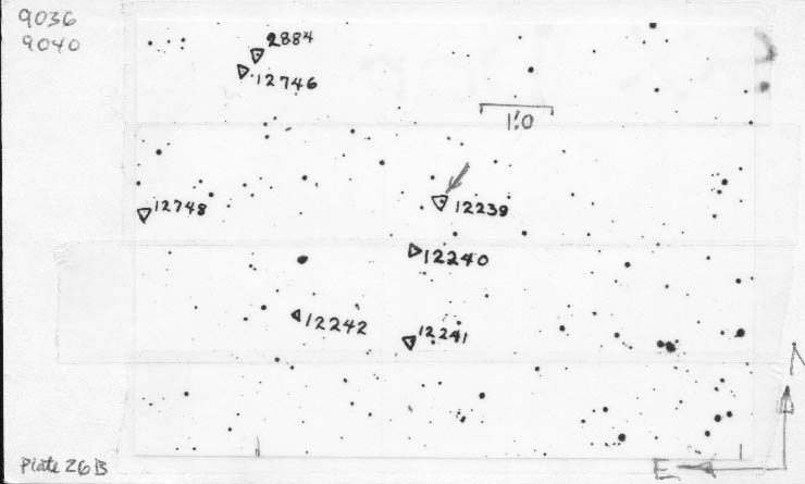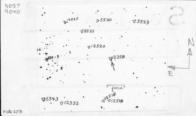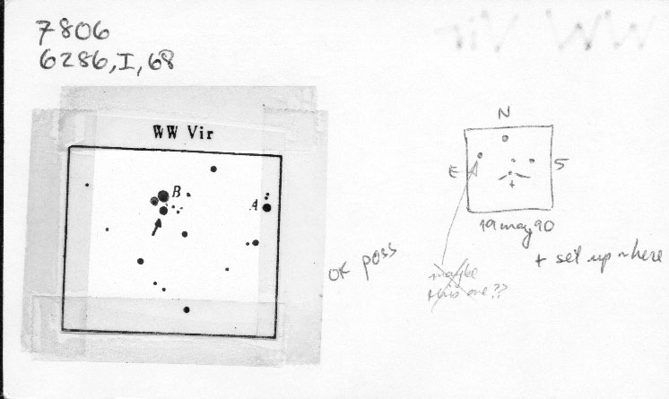 WW Vir -- variable marked with arrow in printed finder, bracketed by double ticks in sketched chart.