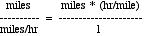 and the miles/miles cancel out, leaving hr on the top ... the units of our answer are in hours (good, a unit of time!)